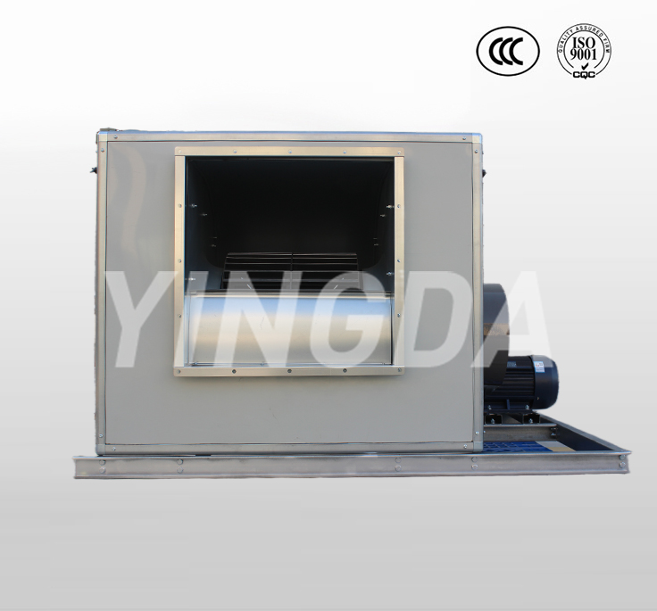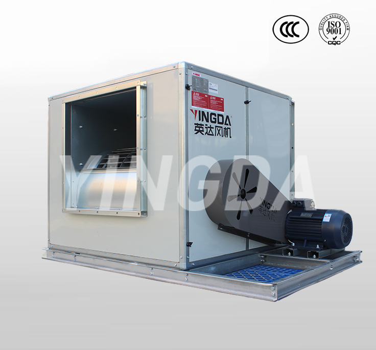 1.1.HTFC型柜式離心風機是一種高效率、低噪聲箱式離心風機。產品由低噪聲前傾多翼離心風機、電機、軸承、傳動件、消聲型箱體等組成。根據安裝位置的不同,提供12種不同的角度的進出風口位置,以滿足用戶不同的安裝需要。根據消防與通風的不同要求分A式和B式兩種類型,A式電機裝在箱體外,用于消防排煙,并經國家消防裝備監(jiān)督質量檢驗中心按GA211-2009《消防排煙風機耐高溫試驗方法》進行耐高溫試驗,能在280℃高溫條件下連續(xù)運行30分鐘以上;B式電機裝在箱體內,用于通風換氣。